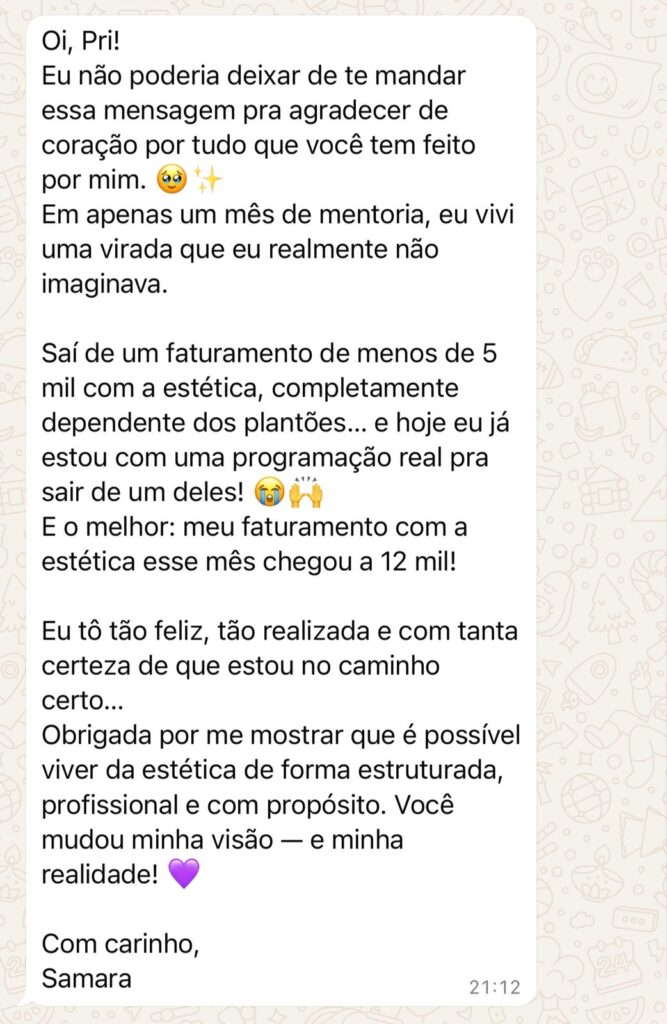 E foi assim que, com método, coragem e estrutura, eu exonerei de dois empregos públicos e construí uma carreira 100% na estética — com estabilidade, previsibilidade e liberdade financeira.